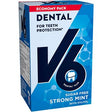 V6 Strong Mint contiene xilitol, lo que reduce la formación de placa, lo que significa que la goma de mascar no solo es agradable y refrescante, sino que también tiene una función preventiva contra el daño de los dientes. Además, la goma de mascar está libre de azúcar.